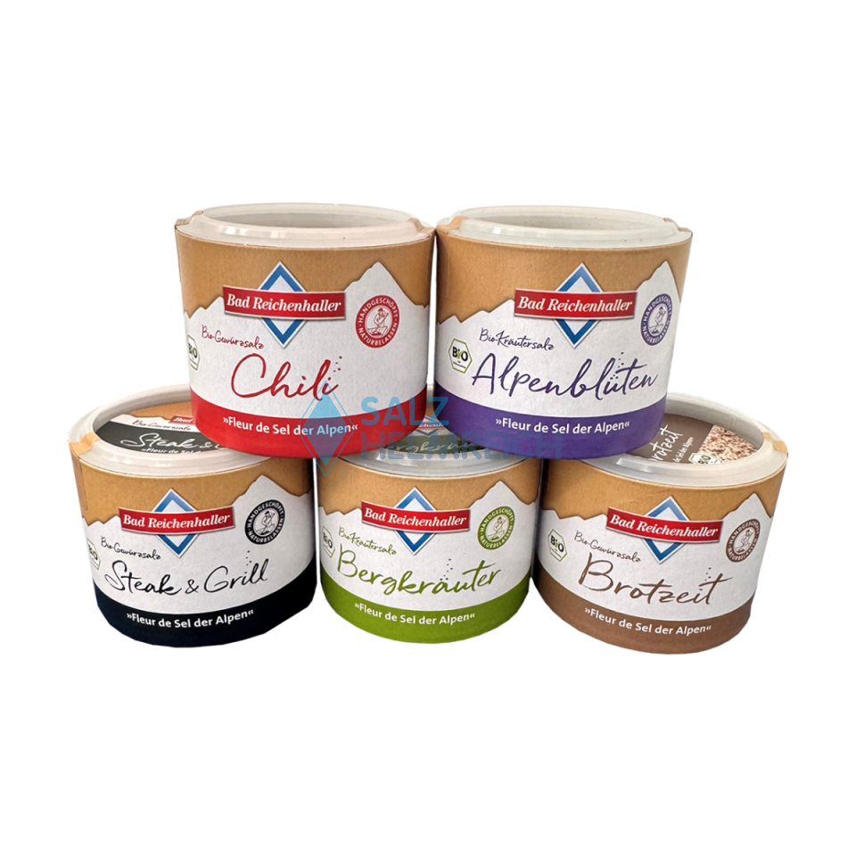 Ein besonderes Set für Genießer: Entdecke die Vielfalt feinster Bio-Gewürz- und Kräutersalze aus den Alpen. Ob zur Brotzeit, beim Grillabend oder für feine Kräuterküche – dieses Set bringt den echten Geschmack der Alpen direkt auf den Tisch.