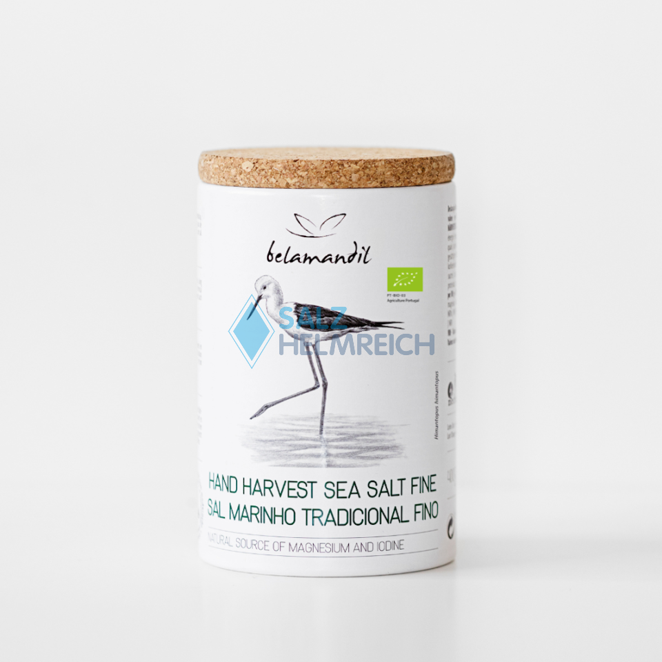 Belamandil Feines Meersalz 400g überzeugt durch seine feine Körnung und seinen reinen, natürlichen Geschmack. Gewonnen wird es traditionell in den Salinen des Nationalpark Ria Formosa an der Algarve.