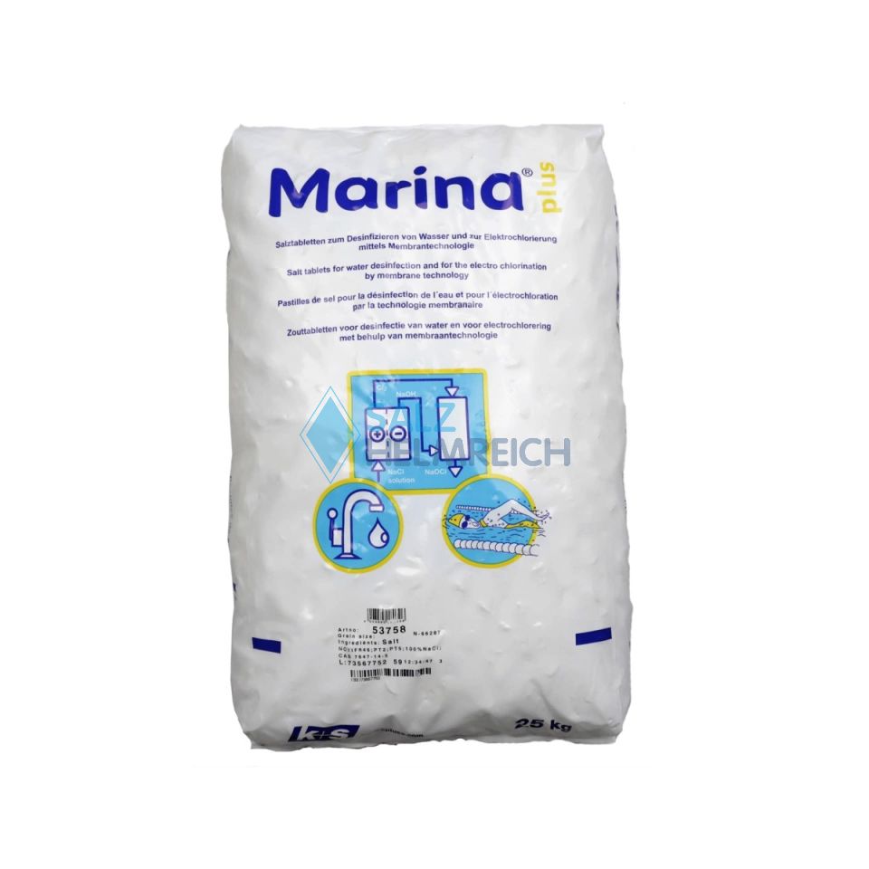 MARINA® PLUS Salz dient zur Desinfektion von Schwimmbeckenwasser, Schwimmbeckensolen und Trinkwasser nach allen gängigen Elektrolyseverfahren, sowie zur Herstellung von Schwimmbeckensolen. Die Salztabletten sind geeignet für die Verwendung mit Membranelektolyse Systeme