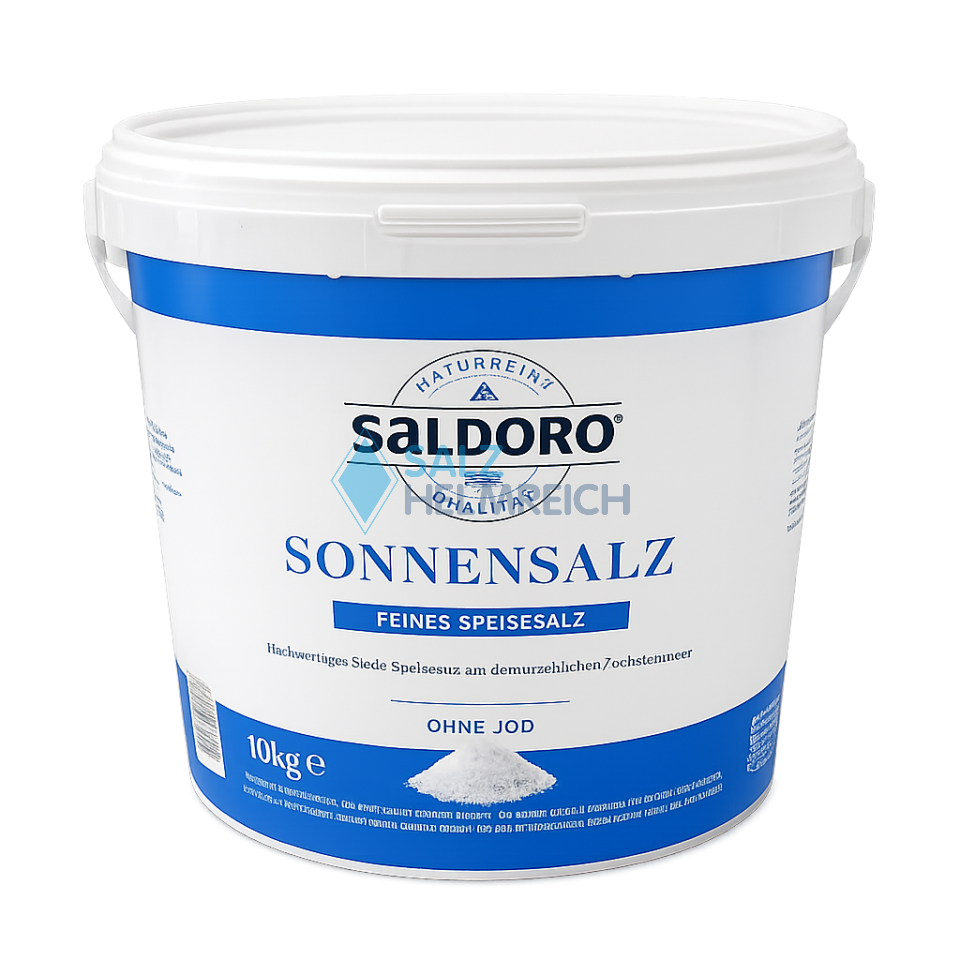 SALDORO Sonnensalz ohne Jod ist ein hochwertiges Siedesalz aus den Salzbeständen Norddeutschlands. Mit seiner gleichbleibenden Qualität und Rieselfähigkeit ist es perfekt für den verlässlichen Einsatz in der Profiküche geeignet. Nach Produktentnahme eignet sich der Eimer für die ökologische Weiterverwendung mit Zweitnutzen für vielfältige Anwendungen in der Küche. Inhalt: Siedespeisesalz, Trennmittel: E535, E500 Körnung: 0,7 - 0,16 mm